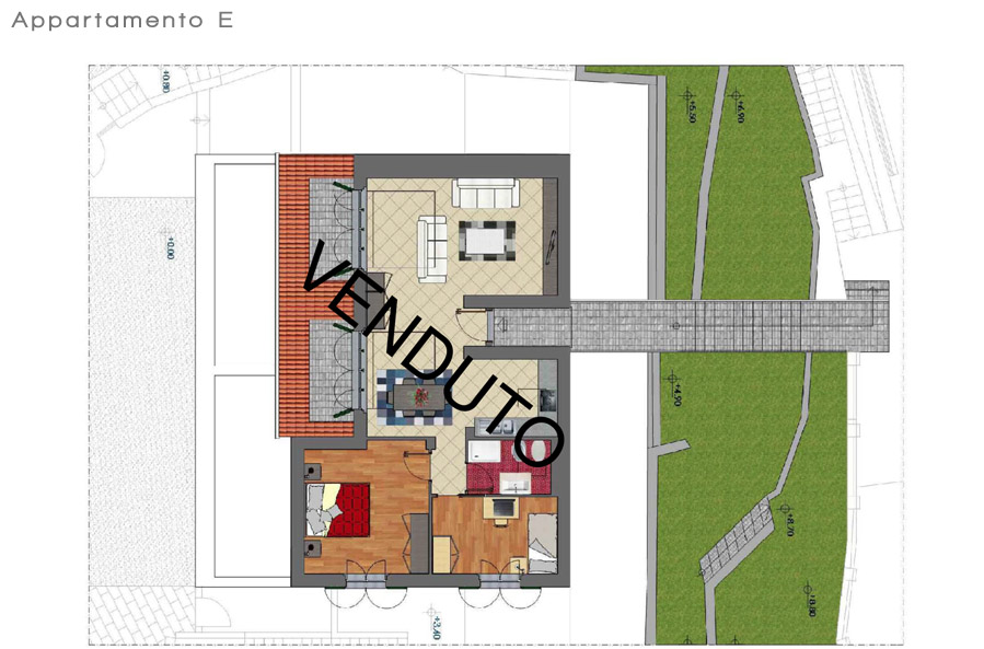 sistema d'irrigazione. I serramenti in PVC completi di zanzariere e le persiane in alluminio concorrono a un ottimale livello di isolamento termico.